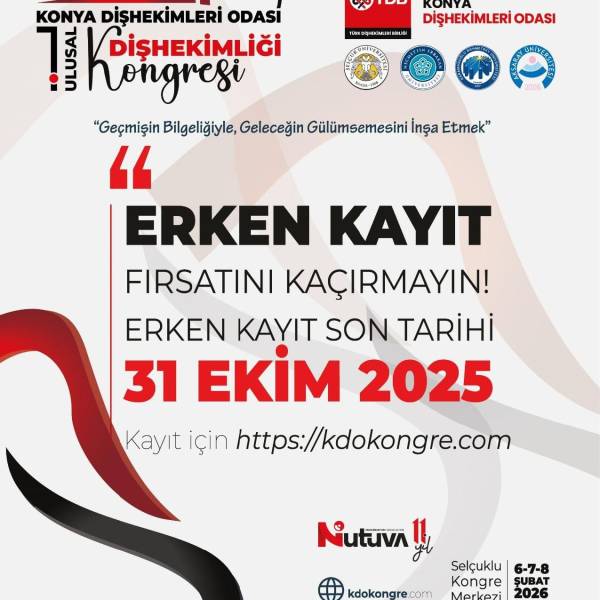 Konya Dişhekimleri Odası 1. Ulusal Dişhekimliği Kongresi 6-7-8 Şubat 2026 tarihinde Selçuklu Kongre Merkezi'nde.